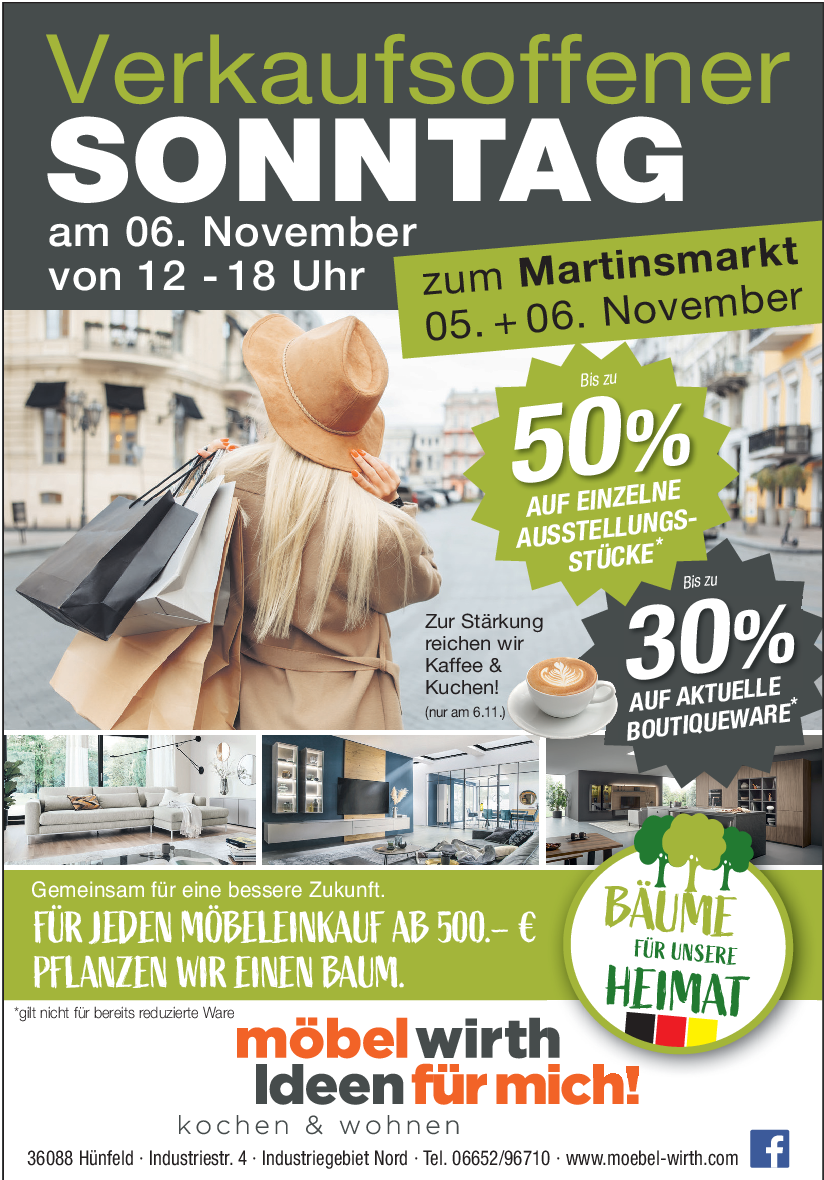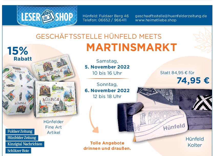 Der im Martinsmarkt eingebettete verkaufsoffene Sonntag ist eine ideale Gelegenheit, das breite Angebot des Hünfelder Handels in der Innenstadt kennenzulernen. Sie gilt als eine Einkaufsstadt der kurzen Wege, der Großteil der Geschäfte lassen sich bequem zu Fuß erreichen. Entsprechend können sich die Besucher dabei auch von den Vorteilen des stationären Handels überzeugen. Das gleiche gilt dabei auch für die gastronomische Vielfalt, die sich am Martinsmarkt selbstverständlich ebenfalls von ihrer Schokoladenseite präsentieren möchte. Und wer dann noch ein bisschen Hunger auf Kultur verspürt, für den lohnt sich vielleicht ein Abstecher zum Beispiel in das Museum Modern Art oder in das Konrad Zuse Museum.