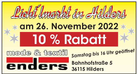 Organisiert wird der weihnachtliche Markt vom örtlichen Tourismus- und Gewerbeverein ,,Wir für Hilders".